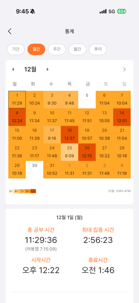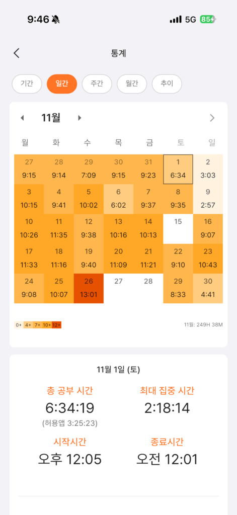 과목별 시간분배를 신경쓰지 않고 하고 싶은 과목을 많이 공부한 느낌 주말에는 쉬고 공부를 정말 조금만 했다.